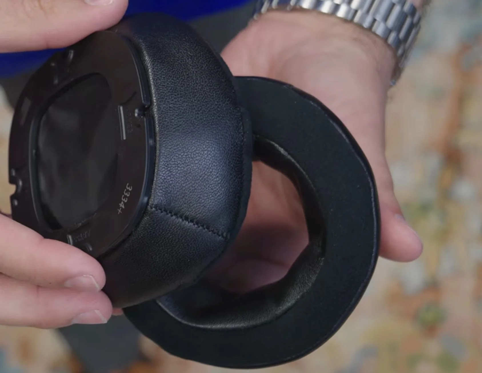 Ear Pads :‘Pillow top’ hybrid pads in lambskin leather with vegan Ultrasuede contact surface; magnetically removable